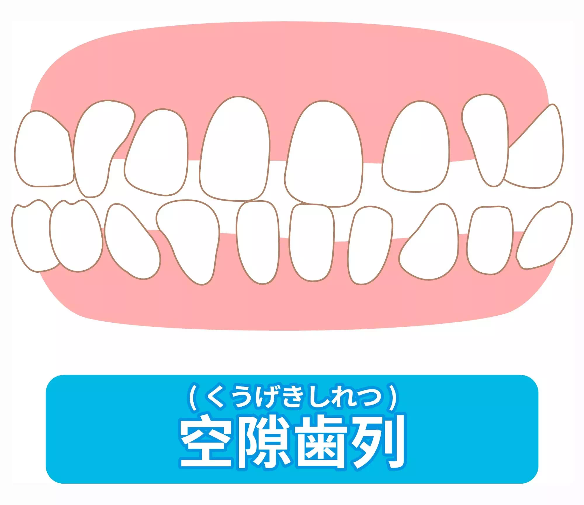 空隙歯列とは、歯と歯の間に隙間が空いている状態を指します。専門的には「空隙歯列弓」とも呼ばれ、全体的に歯の間が空いている場合もあれば、前歯の中央だけに隙間がある「正中離開」と呼ばれる状態もあります。いわゆる「すきっ歯」として認識されることが多く、笑ったときや話すときに目立ちやすいため、見た目を気にされる方が少なくありません。